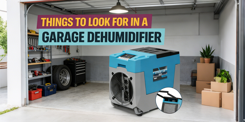 Garages are prone to moisture issues because they are not heated and sealed as the rest of the home would be. Rain, moisture in the ground, temperature changes, and poor air circulation allow damp air to accumulate. Over time, this excess humidity can cause rust to form on tools, mold and mildew growth, and strong musty smells that will permeate into nearby rooms.  The U.S. Environmental Protection Agency recommends keeping the indoor air’s humidity between 30% and 50% to help prevent mold and moisture damage, but garages tend to run significantly higher without proper control. Dehumidification of a garage helps take additional moisture out of the air and protects tools, vehicles, and stored materials. This is important for attached garages, detached garages, storage spaces, and workshop spaces. In this article, you’ll discover 7 things to look for clearly before deciding on a garage dehumidifier, so you can control moisture the right way to start.