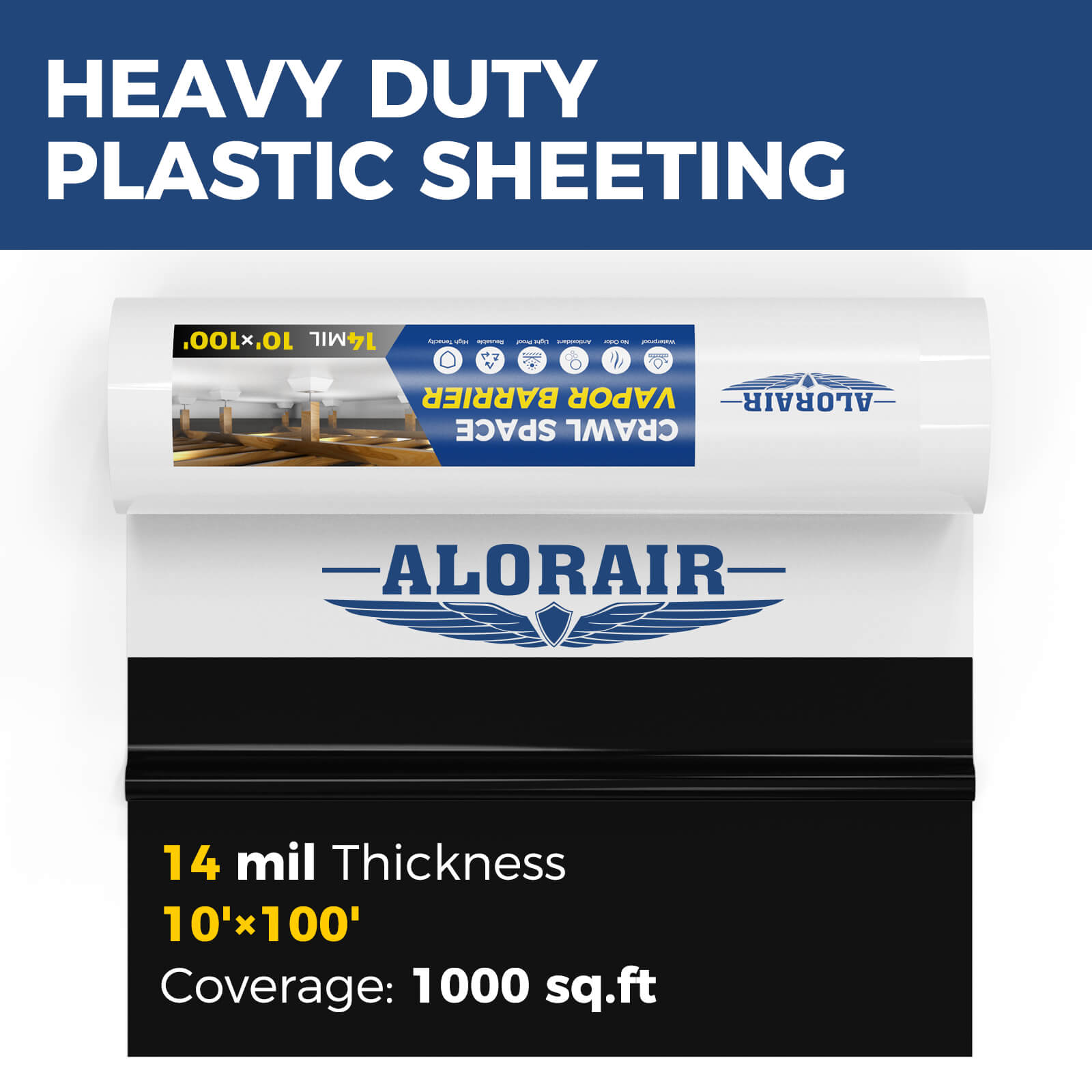 Alorair 14mil Crawlspace Vapor Barrier 10'x100' for Crawlspace Encapsulation Moisture Control