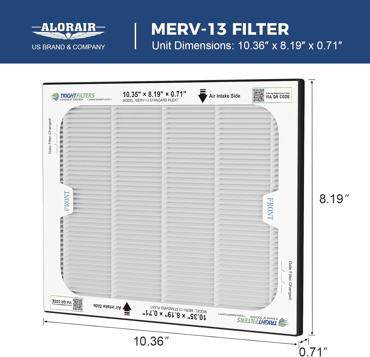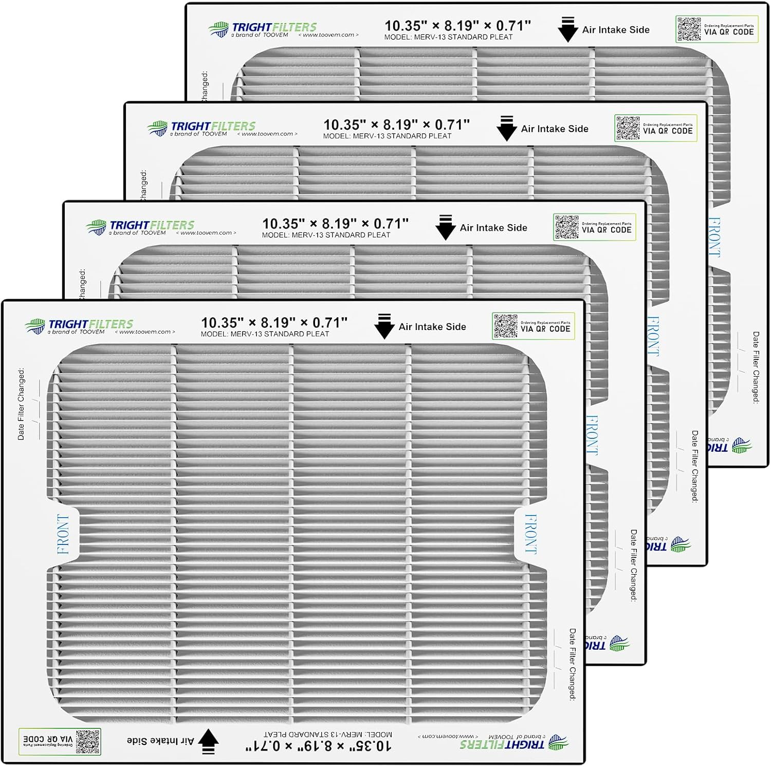 Filter dimensions:4 Pack Filters for AlorAir air filtration system 10.36" x 8.19" x 0.71"