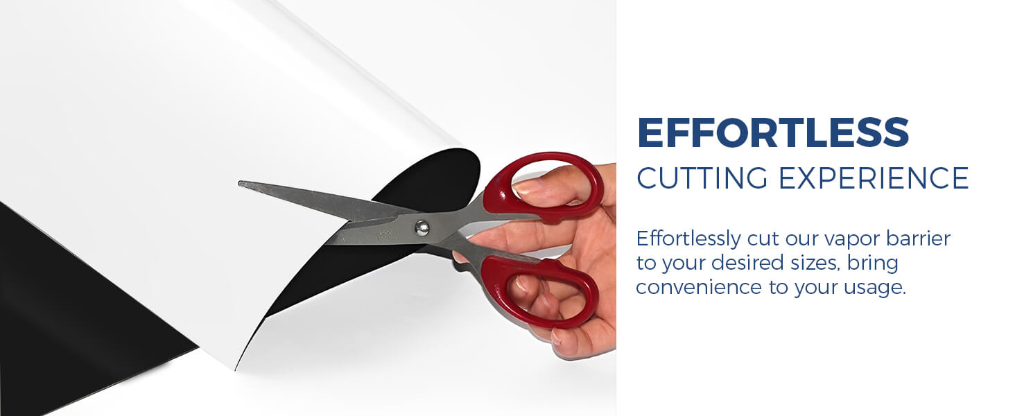 Strong and Durable: Featuring an upgraded black-and-white double-sided design. It is made of heavy-duty polyethylene material with special anti-aging plastic additives to ensure the film resists tearing, even after extended use. Smooth surface, easy to clean, and versatile. It is an ideal vapor barrier for crawl space encapsulation and for moisture and radon mitigation.