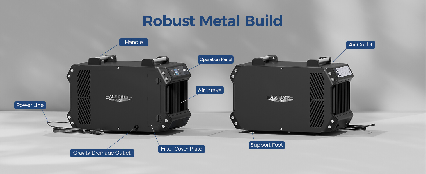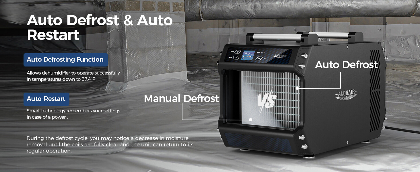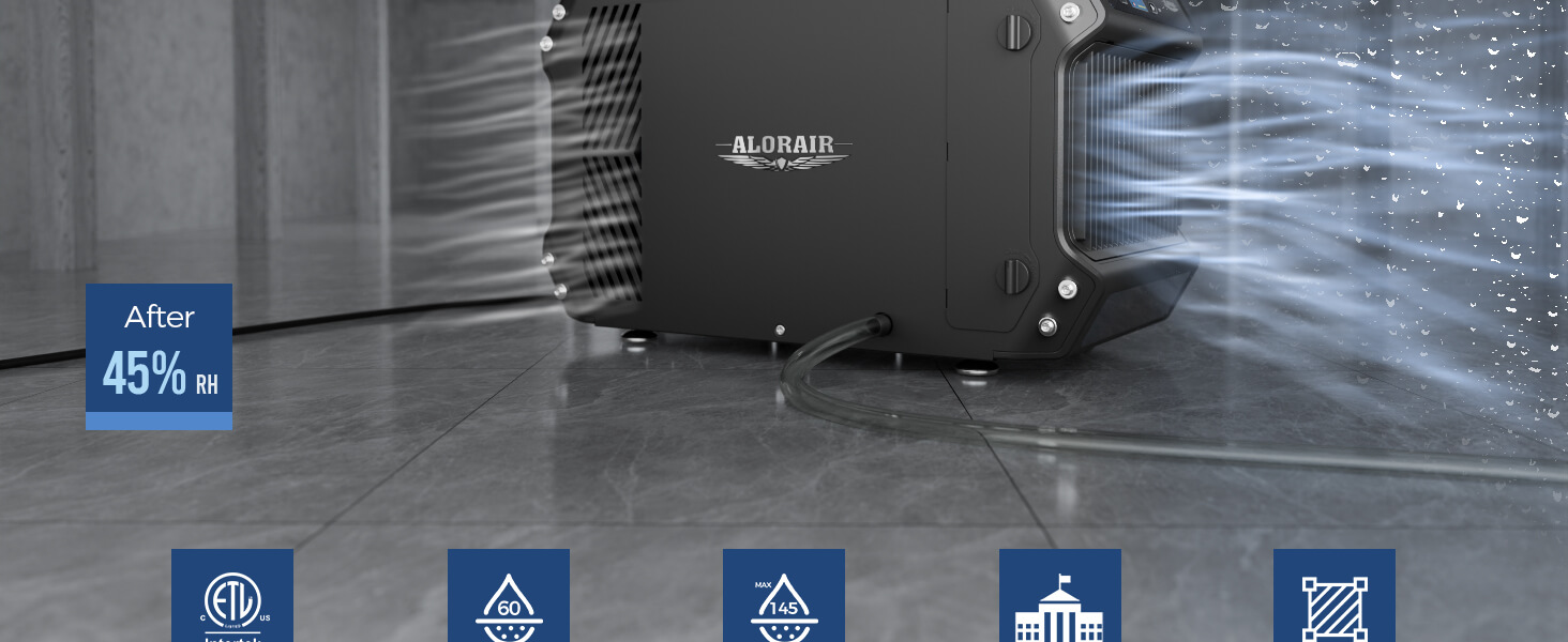 Compact Design Crawlspace Dehumidifier: Our 145 PPD crawl space dehumidifiers with a drain hose are fully ETL-compliant for electrical safety. All AlorAir basement and crawl space dehumidifiers are crafted for maximum functionality. With an ergonomic handle for easy mobility, this unit is built to last while maintaining its shape, even in demanding commercial environments.