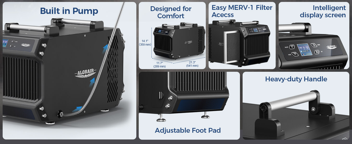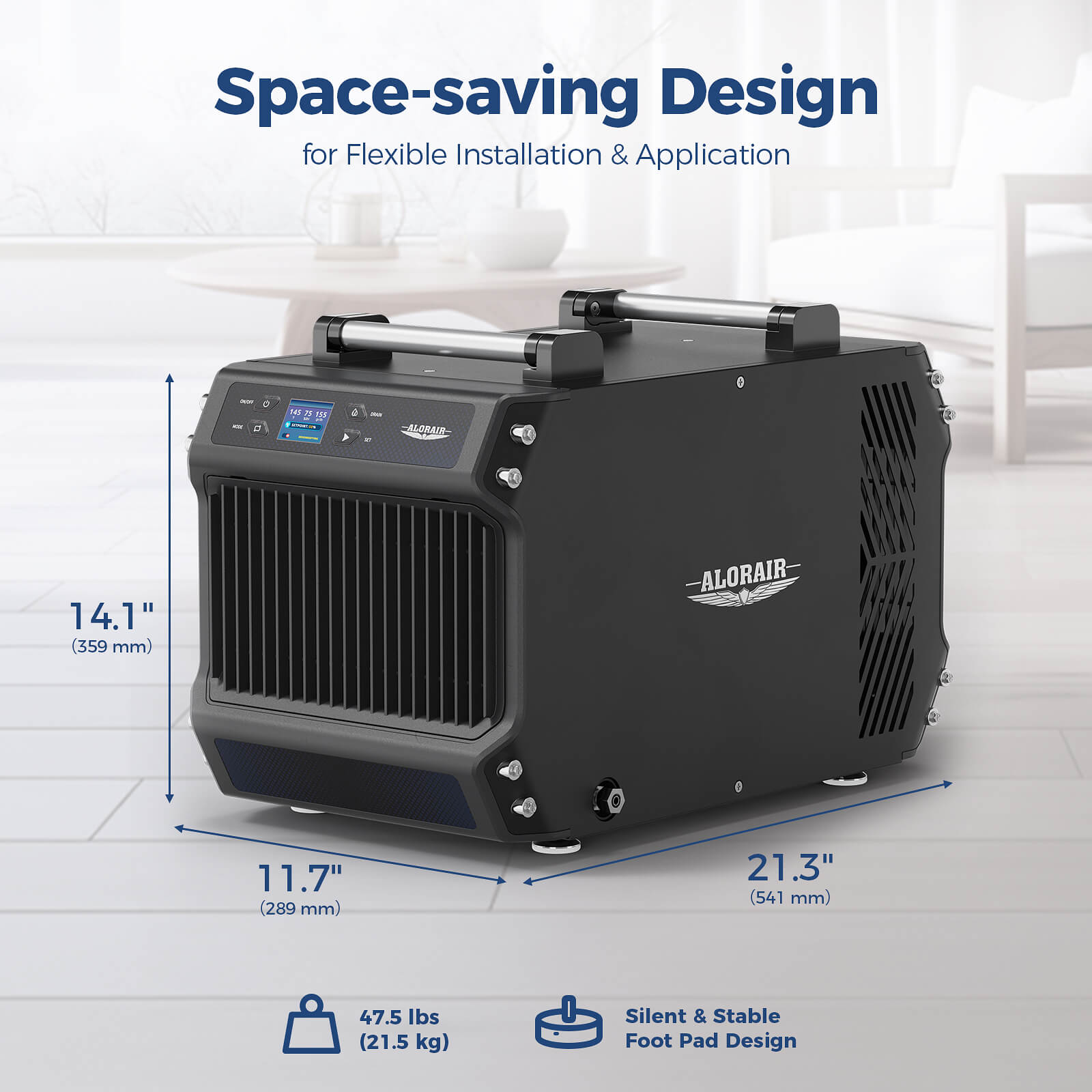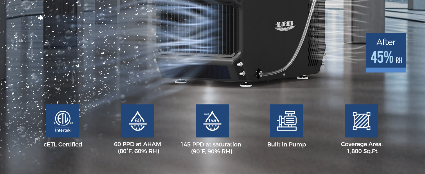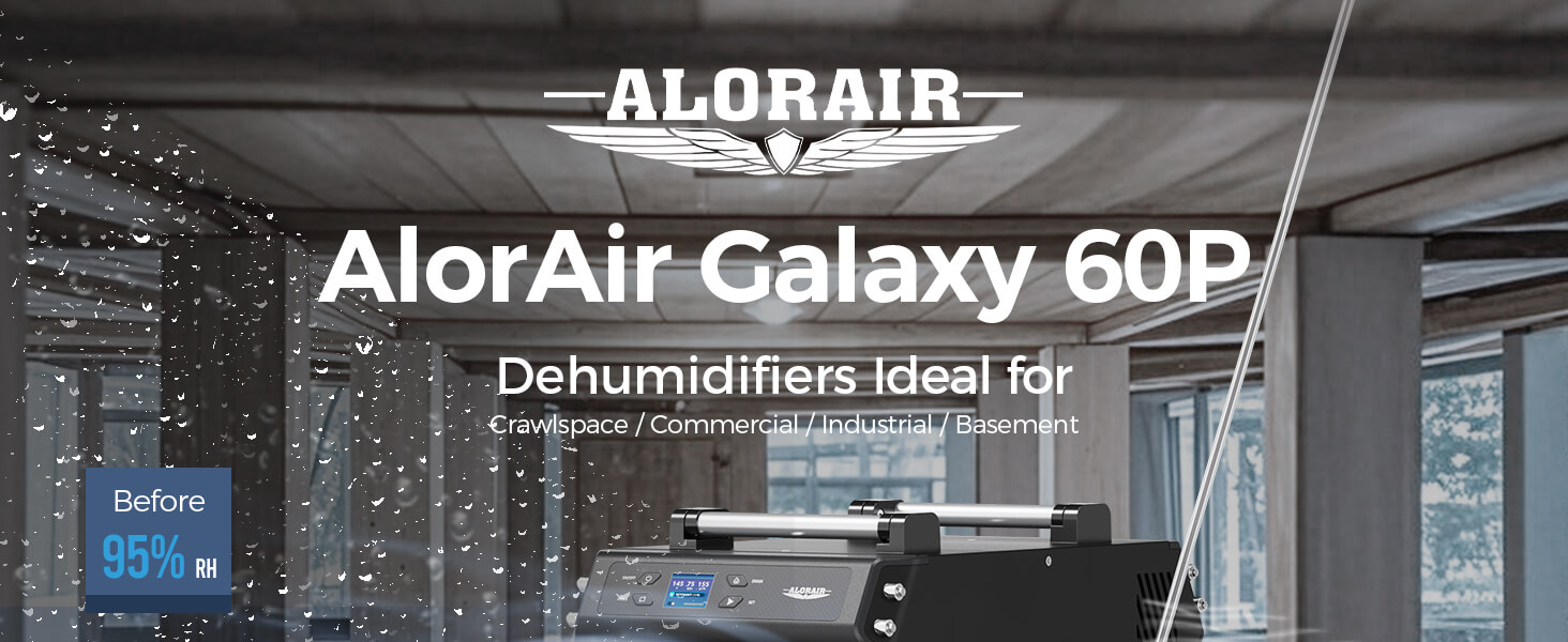 AlorAir Galaxy 60P Removal of 145 PPD at saturation condition, coverage area up to 1,800 sq.ft. It fit for any basement, crawl space, storage area, garage, large room, or commercial use.