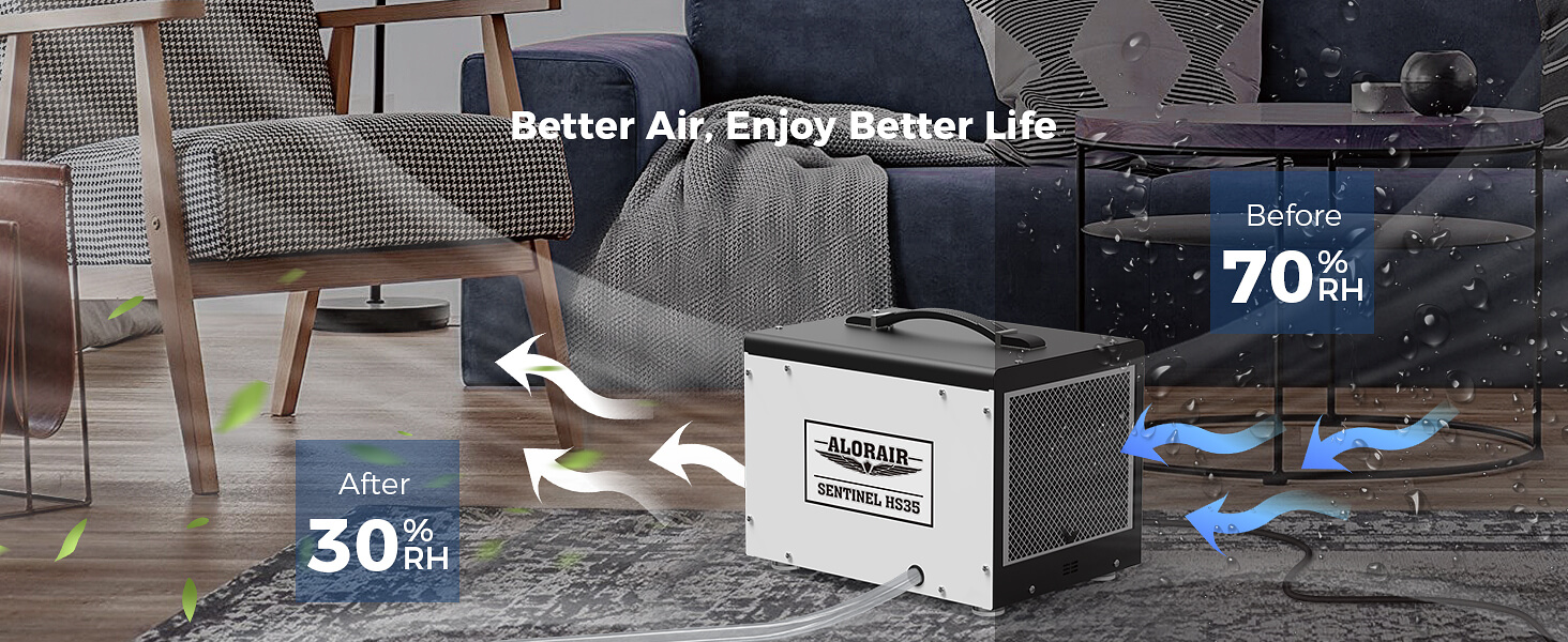 1. Prevent mold and musty odor - Molds are caused by moisture in the air and spread easily. They can grow on wood, pipes, carpets and even wallpaper. Once grown, they're very difficult to remove. That's why it's important to have dehumidifiers that reduce the moisture content of the air by drawing out excess moisture. The humidity in your home is already too high? Then an AlorAir 70ppd dehumidifier can help speed up the drying process.